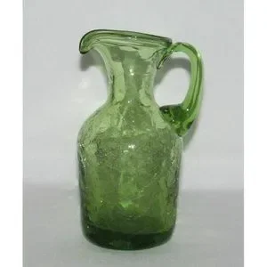 Elegant Glass CRACKLE Olive Green Slender Miniature Pitcher