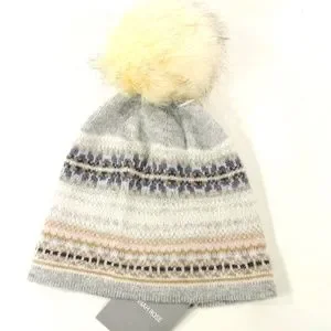 HANNAH ROSE ⚜ WOMEN'S GREY CASHMERE WINTER KNIT POMPOM HAT