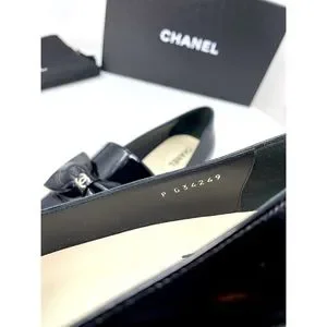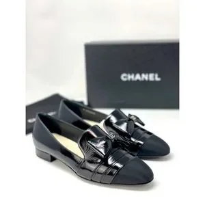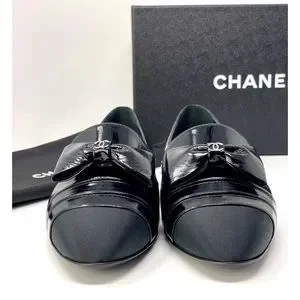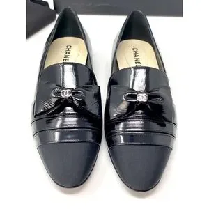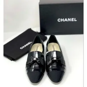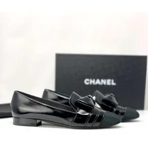 CHANEL black patent leather bow loafers flats EURO 37.5/USA 7.5