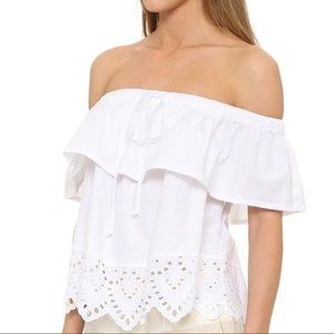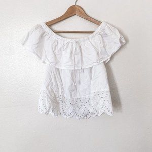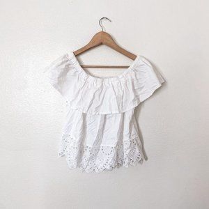 Madewell White Balcony Eyelet Ruffle Cold Shoulder Blouse