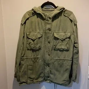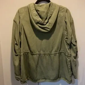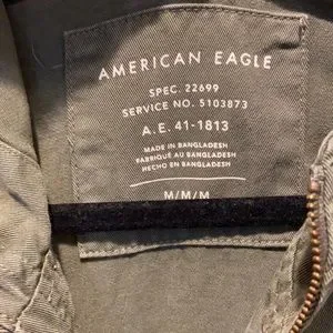 AE cargo jacket in excellent condition, no flaws. Full length, has an adjustable waist and adjustable cuffs on sleeves. Zip up with additional button closure.
