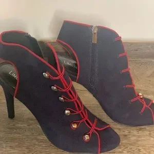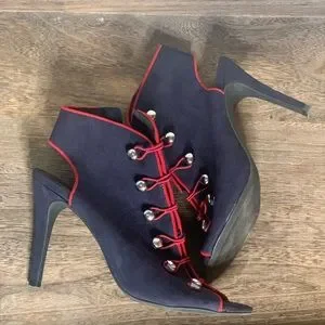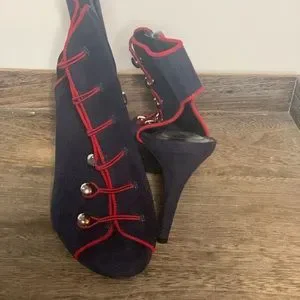Like new button navy heels with red lining