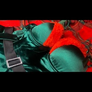 ✨Silk like polyester material Emerald Green w/ fluffy soft rose red outlining