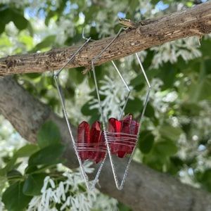 The Ruby Glows Ruby Red Amber Quartz Diamond Shaped White Gold Tone Earrings
