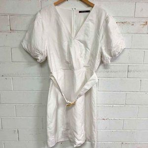 PORTMANS Blair Linen Puff Sleeve Wrap Dress