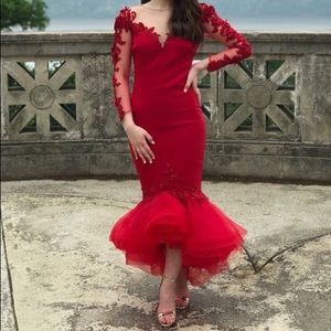 RED handmade Tarik Ediz red color dress worn once for engagement pictures in very good condition.
