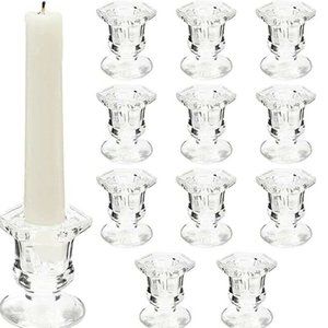 Glass Candle Holders Set, Clear Taper Candlestick Holder (12 Pack) Juvale.