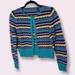 Teal, navy, lilac and pistachio green crochet striped cotton