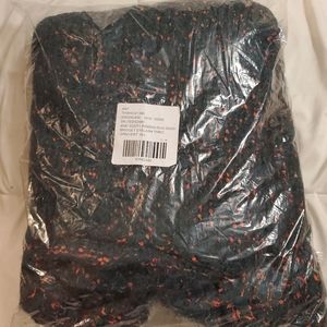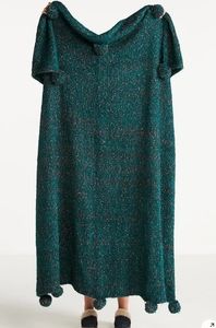 NWT, Anthropologie beautiful Pommed eyelash throw blanket in deep green with flecks of color.