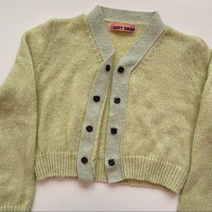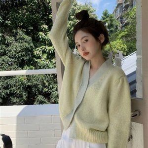 SOLD YesStyle V-Neck Two-Tone Green Knit Button-Up Trendy Cardigan