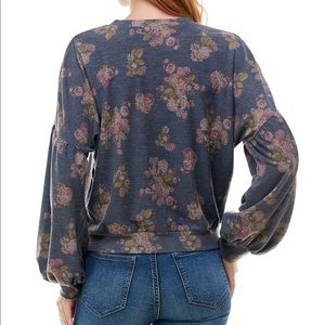 NWT Gypsies & Moondust Floral Puffed Sleeved Top. Adorable SOFT floral top. Puffed sleeved with drop shoulder. Elastic band around waist and sleeves. Heather navy blue. This has a bit of an oversized fit with balloon-type sleeves.