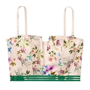 Light baby pink base shade with gorgeous floral detailing and kelly green banding along the bottom hem.