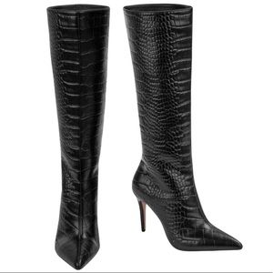 MISSGUIDED Mock Croc Mid Heel Knee High Boot