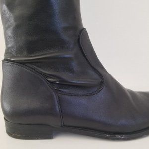 Beautiful, extremely soft, black leather, over-the-knee boots with cute ties. By designer Anna Baiguera who produces sustainably-made shoes, as per her website. This designer's shoes have been approved by Oprah as one of her favorite evening alternatives to heels.