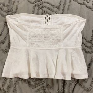 Crinkly and lightweight tube top featured in a peplum silhouette.