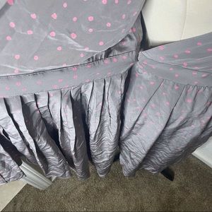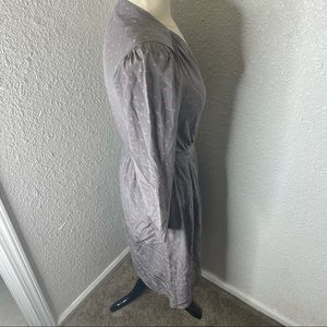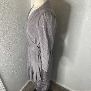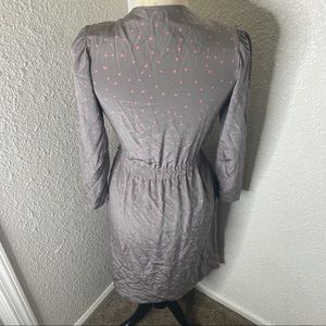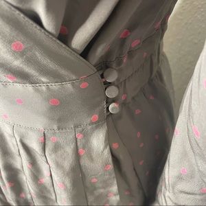 Very fun & flirty vintage wrap dress from Norah Noh. 100% silk and is gray in color with pink “splotches”. Features pleat like asymmetrical detail in front of dress.In excellent condition. Has shoulder pads. Size 6. Gives me Carrie Bradshaw vibes.