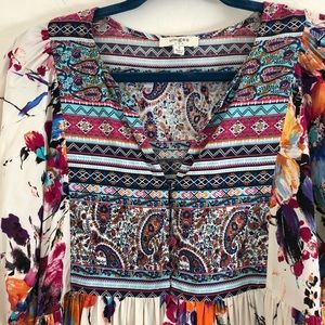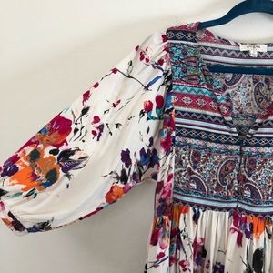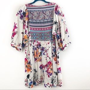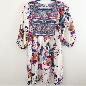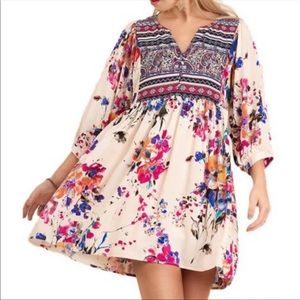 Umgee Bohemian Floral Print Babydoll Tunic Dress size Small