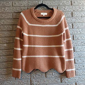 Scallop Cropped Sweater | Size M | Gold with Cream Stripes