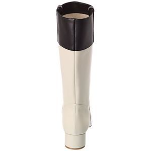 Please note: Size selections are European. For US conversions, please reference size chart. Color/material: white and black leather Design details: colorblocked design and pull-on tabs at sides Lightly padded leather insole Smooth leather sole with light traction 1.75in heel 12.5in shaft 15in boot circumference Please note: All measurements are approximate and were taken from a size 37; slight variations may occur. Made in Italy