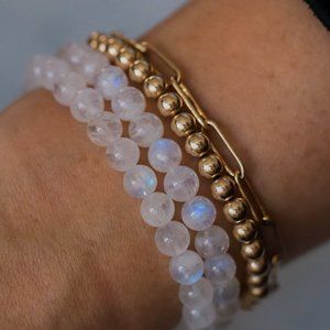 Genuine Rainbow Moonstone Sapphire Natural Crystal Stretchable Bracelet for her