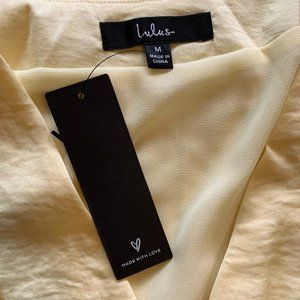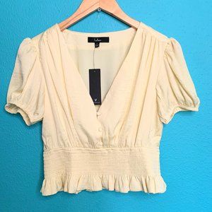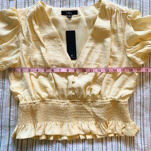 NWT Lulus Bring the Style Light Yellow Puff Sleeve Peplum Crop Top