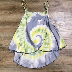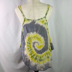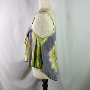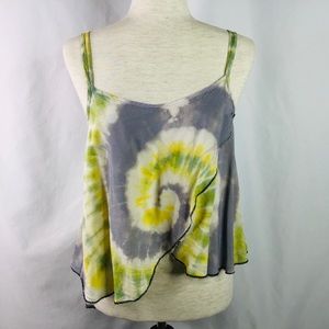 Boho Tank Top One Size S/M Tie Dye Hippie Festival Flowy Summer Gray Yellow