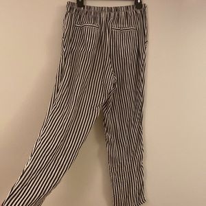 Black and white striped Free People pants, lightweight and summery. Pockets on back and front, slight run in fabric on waistband is pictured (picture 4).