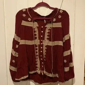 Beautiful maroon boho embroidered Free People top. Working buttons !
