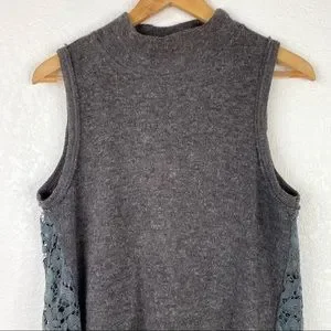 Anthropologie Moth Gray Knit Lace Back Sleeveless Sweater