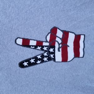 Style tags: Women's gray Cashmere hoodie. Women's Cashmere Sweater. Women's Cashmere. Gray Cashmere Sweater. Peace fingers. Patriotic fingers. Peace sign Sweater.