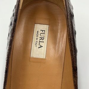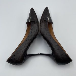 Furla Ostrich Brown Leather Pointed Toe Heels