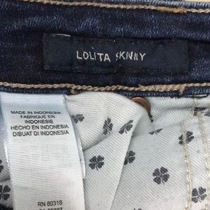 Cute staple for your closet, Lolita skinny dark wash jeans. 29” inseam size 2 or 26” waist. No fraying, rips, tears or stains that I observed.