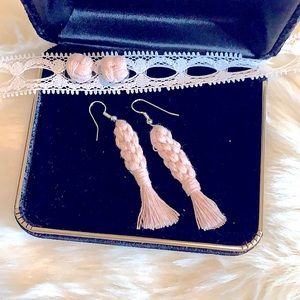 New » (2) Pairs of Pretty Chiffon Pink Boho Style, Super Trendy Earring Set Handcrafted, Macrame Inspired;