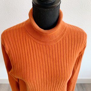 Talbots Burnt Orange Ribbed Long Sleeve Turtleneck Shirt Top Size Large