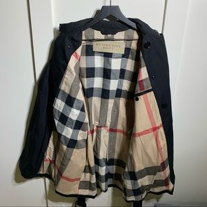 Burberry Mid Length Kensington Trench Coat with Plaid Lining, Black