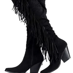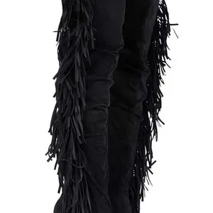 Thigh High Suede Fringe Boots