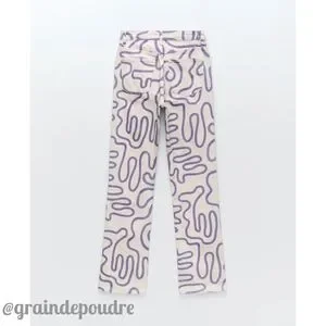 Rare Zara Purple Squiggle Graffiti Print Off White Straight Leg Jeans 36 4 42 10
