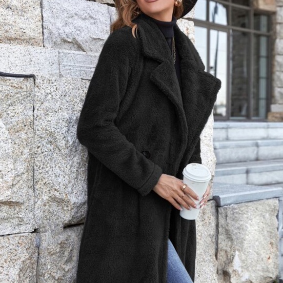 Cozy Black Button Teddy Jacket Coat Winter Minimalist