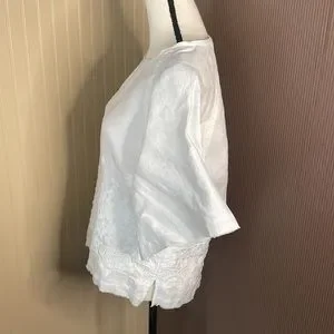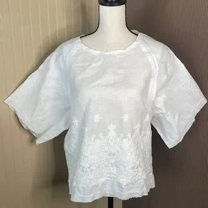 Karen kane white 100% linen embroidered blouse size small size splits measurements are approximate sleeves 19.5 armpit to armpit 20.5 length 24