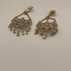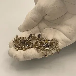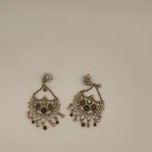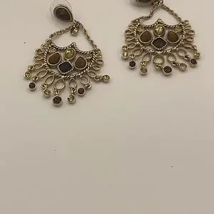 “VINTAGE” Drop /Chandelier Style Gold Tone With Gemstones Pierced Earrings.
