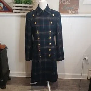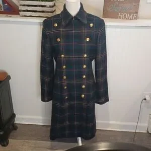 Vintage Lauren Ralph Lauren Plaid Wool Double Breasted Coat Size Medium