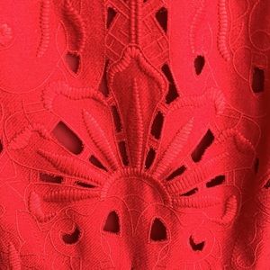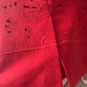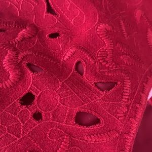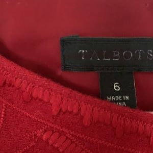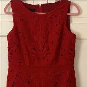 Talbots dark red wool blend sleeveless sheath dress with exquisite embroidered cut out pattern; fully lined, soft, no itching! Like new, only worn once!