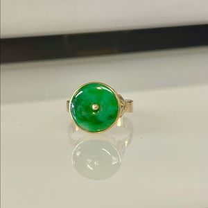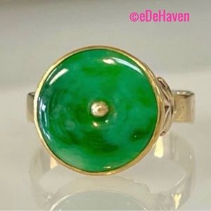 Artisan 22k & 14k imperial Apple green jade Bi-disc ring