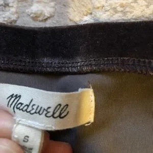 This Madewell Velvet Long Sleeve has balloon sleeves. The color is the same color as the stock photos- the lighting in my house is poor which is why the coloring looks different. It is in excellent used condition. There are no noted flaws, stains, or signs of wear. Please let me know if you have any questions before purchasing. Thank you!