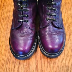 Presenting a beautiful,vintage pair of 9732's/1460's in deep plum. This eight hole ladies boot comes soft bodied leather. No scratches or tears. Beautiful wrinkled texture....grabs the light. Full tread pattern sole with a bright golden welt stitch. Very nice boot. Uk4/W6 💜❤🇬🇧