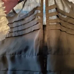 Party and cocktail ruffle laden dress. Sheer at shoulder line with keyhole back button closure. "Hidden" zipper in back. Adrianna Papell is high fashion wear, and this dress is a great price!! But as always, I'm open to ALL offers!!