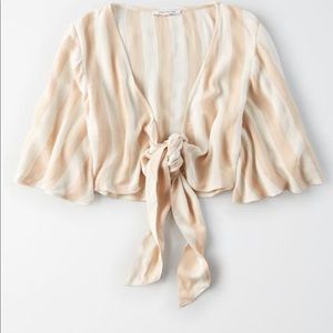 NWT American Eagle Striped Front Tie Blouse. Size Medium