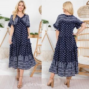 ❤️LAST 1! Navy Paisley Border Print Fully Lined Midi Pocket Dress!
