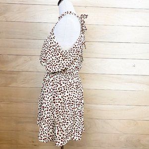 Coeur De Vague Women Ivory Casual Tie Neck Halter High Neck Printed Dress L