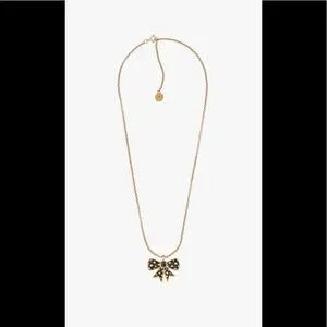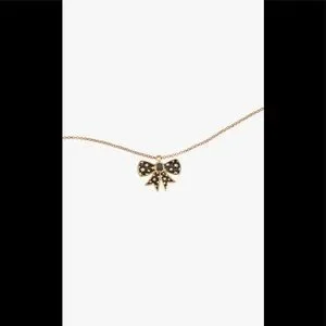Necklace plated in 24K gold with bow charm with star detail. Lobster clasp closure.